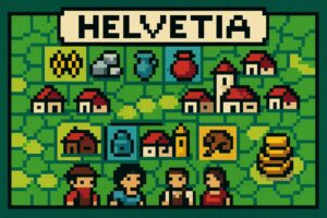 Helvetia ist ein Brettspiel, bei dem die Spieler Dörfer in der Schweiz aufbauen und Aufgaben erfüllen, um Punkte zu sammeln. Sie planen geschickt, platzieren Gebäude